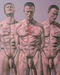 2006Drie naakte mannen met opzichtig geëtaleerde moederbinding